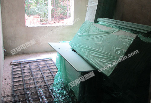 使用材料:安邦雙導發(fā)熱電纜,型號ABV0012800 TXLP/2R/17;智能溫度控制器;地暖感溫探頭;地暖專用保溫板;地暖專用反射膜;鋼絲網、地暖專用鋁箔膠帶、卡釘?shù)取?/span>