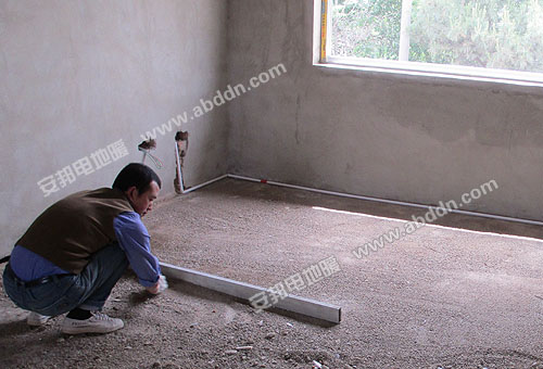 (1)清理施工現(xiàn)場;測量地面及踢腳線的整體平整度,并把水平線標在每個房間的墻面上,用1:3水泥沙拌勻找平,確保所有房間地面在同一水平線上。