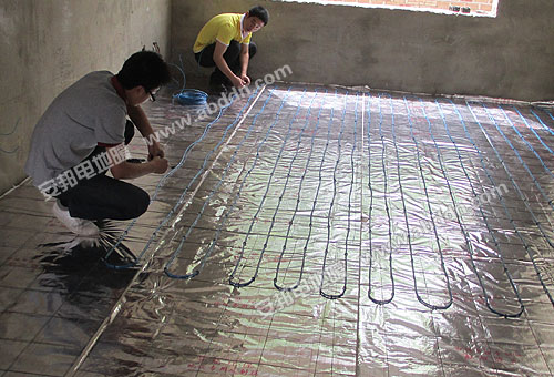 (2)鋪設絕緣保溫層:將聚苯乙烯保溫板鋪設在平整的結構面上。電地暖地面保溫層鋪設時應切割整齊,保溫板間不得有間隙,并用膠帶黏接平整。