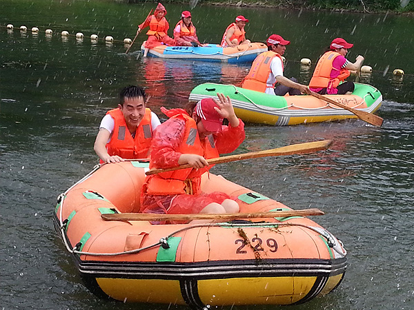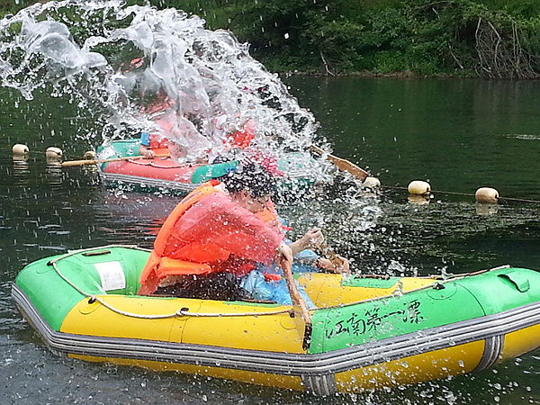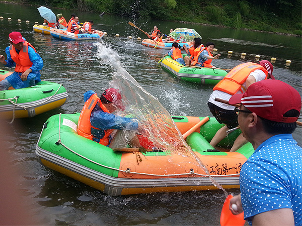 首先我們來到了聞名全國的“江南第一漂”(月亮灣漂流),帶上水槍,穿上救生衣、乘坐橡皮艇,漂流正式上演。親近炫麗自然,體驗 刺激漂流,盡管衣服全部濕透,也擋不住大家的激情與活力。