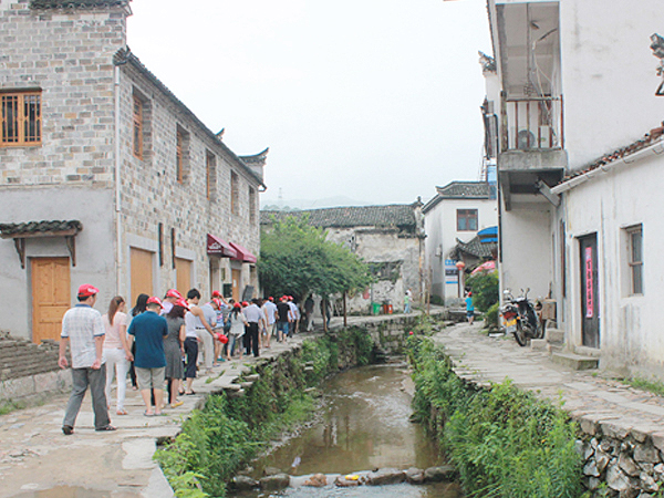 接著,我們來到了査濟古村落,的確這里的幽僻、與世隔絕似的意味,深深攫住了許多人的心。讓大家忘記了生活的瑣碎,沉浸在 山村的幽靜之中。一座座小橋,潺潺的流水,小溪邊浣衣的村婦,溪邊嬉戲的孩童,讓我們忘記了今宵是何年!
